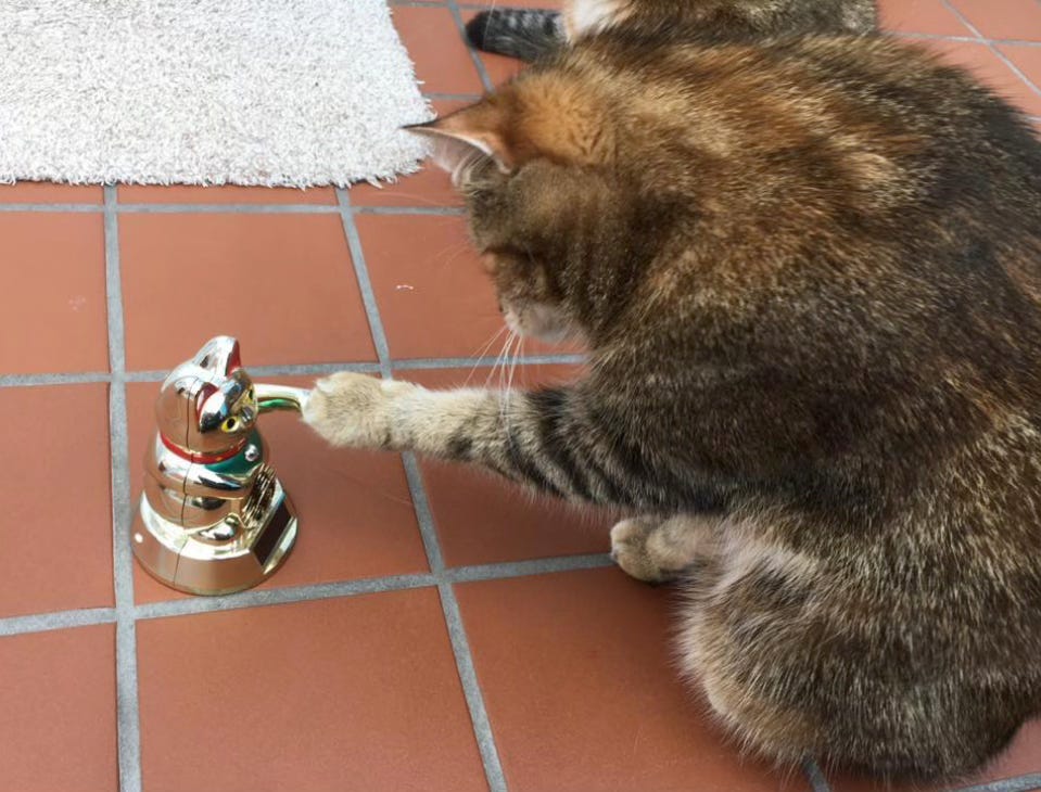 There are a couple of alternative stories that may explain why this beckoning cat is considered to be lucky. One is that the 17th century samurai Li Naotaka was caught in a torrential storm and took shelter under a tree. Looking out through the rain he saw a cat sitting in a nearby temple, waving its paw in a beckoning manner. Intrigued he headed over to the temple to find out why the cat was calling him over (or maybe because he just wanted to give the kitty a quick fuss, the story is unclear on this point). When he got to the cat the tree he had previously been sheltering under got struck by lightning, were it not for the cat, he would have surely died! Another tale tells of a poor shopkeeper who took pity upon a stray, starving cat and shared his meager supplies of food with it. To thank him the cat would sit in his window and beckon in customers and the business flourished as a result.