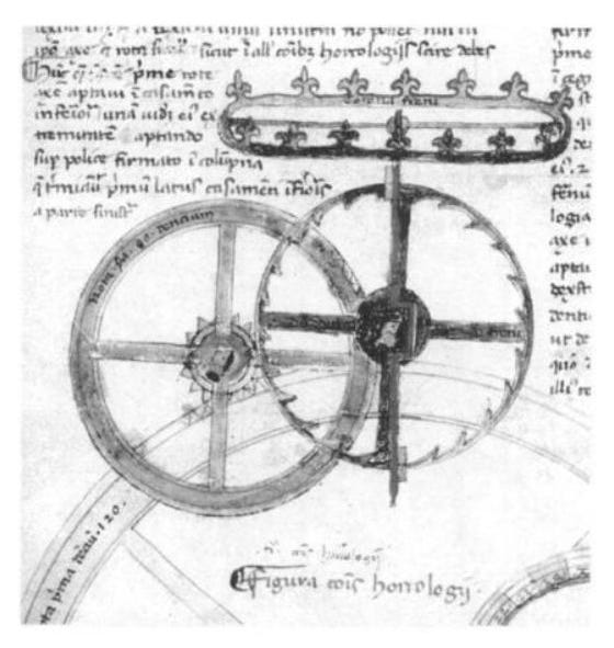 Or if this helps more, here is a one of the earliest existing drawings of a verge escapement, in Giovanni de Dondi's astronomical clock, the Astrarium, built 1364: