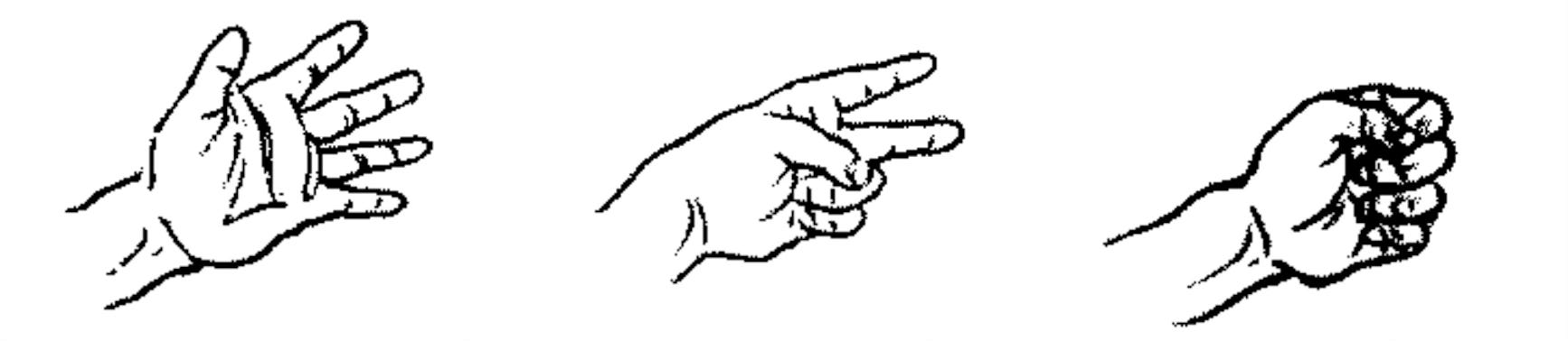 By the 1600s the game had travelled from China to Japan, and this is where the now familiar set of three moves developed (though as we shall see, they have different names in the many iterations of the game). As a group they are called sansukumi-ken (ken of the three who are afraid of one another). From the 18952 book Korean games with notes on the corresponding games of China and Japan by Stewart Culin we find a description of the game we know today: