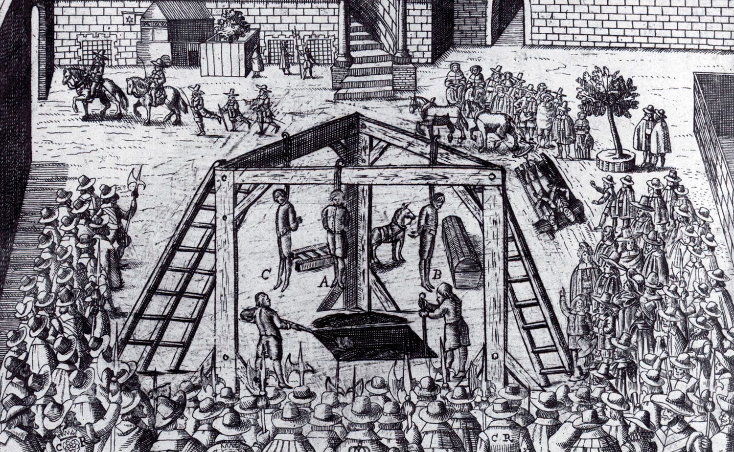 This day (Oh, the stupendous and inscrutable judgments of God!) were the carcasses of those arch-rebels, Cromwell, Bradshawe (the judge who condemned his Majesty), and Ireton (son-in-law to the Usurper), dragged out of their superb tombs in Westminster among the Kings, to Tyburn, and hanged on the gallows there from nine in the morning till six at night, and then buried under that fatal and ignominious monument in a deep pit; thousands of people who had seen them in all their pride being spectators. Look back at October 22, 1658 [the entry where Evelyn describes Cromwell’s funeral] and be astonished! and fear God and honor the King; but meddle not with them who are given to change!